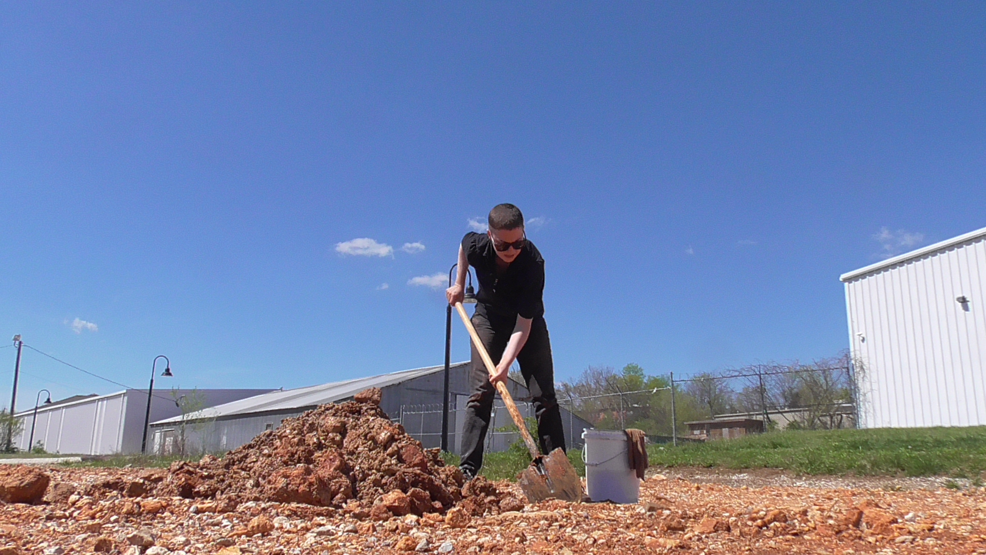 3hr hole-digging action, “Pathway (in)dependence” for Inverse Performance Art Festival in Fayetteville Arkansas, at the sculpture building at the University of Arkansas. White poker chips, beeswax (3 casts made of the bottom of the hole), 2 caps (1 camo 1 NY yankees), bucket, sunglasses, shovel.