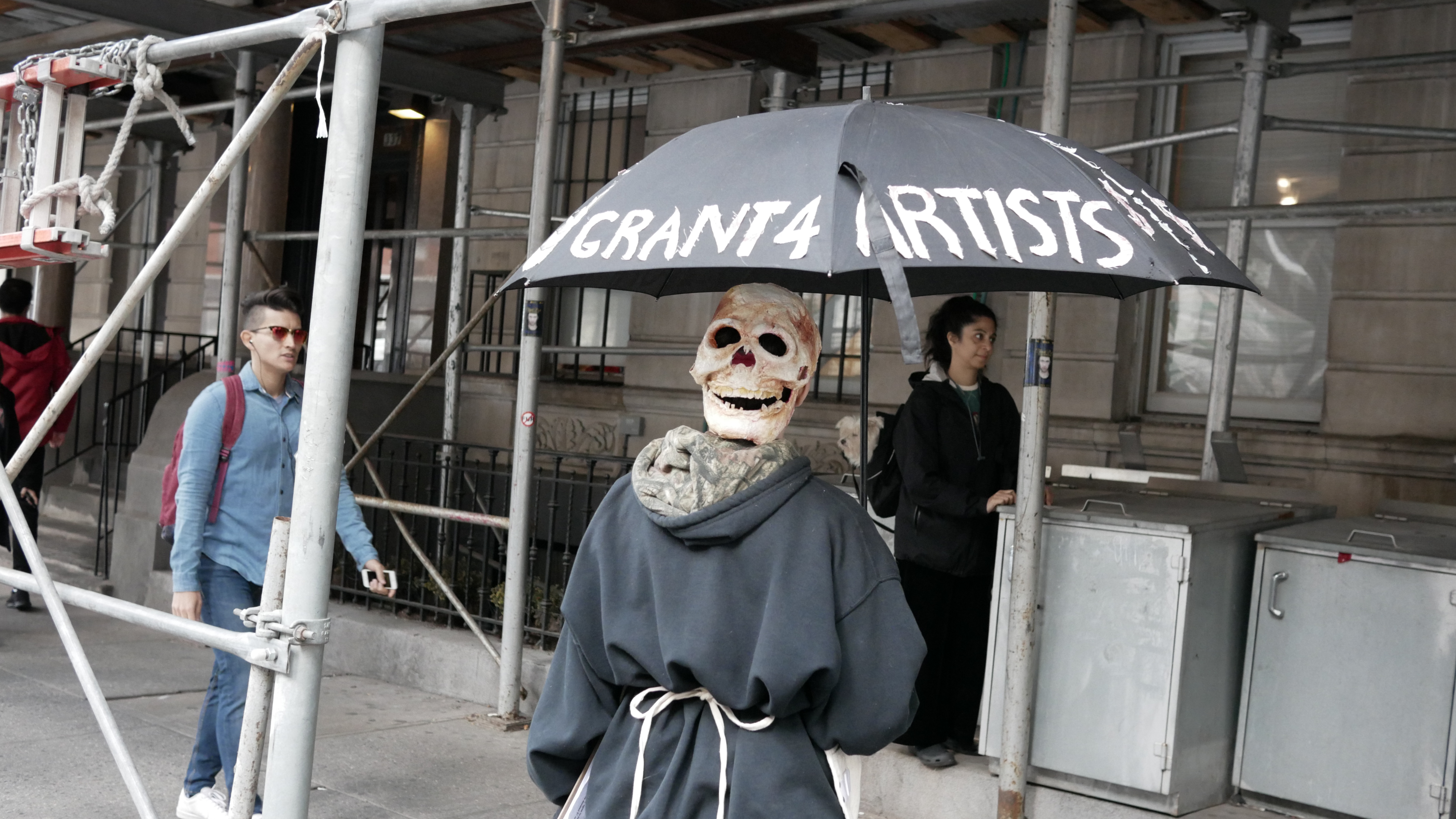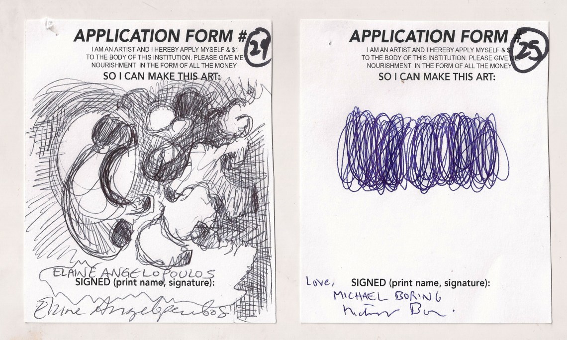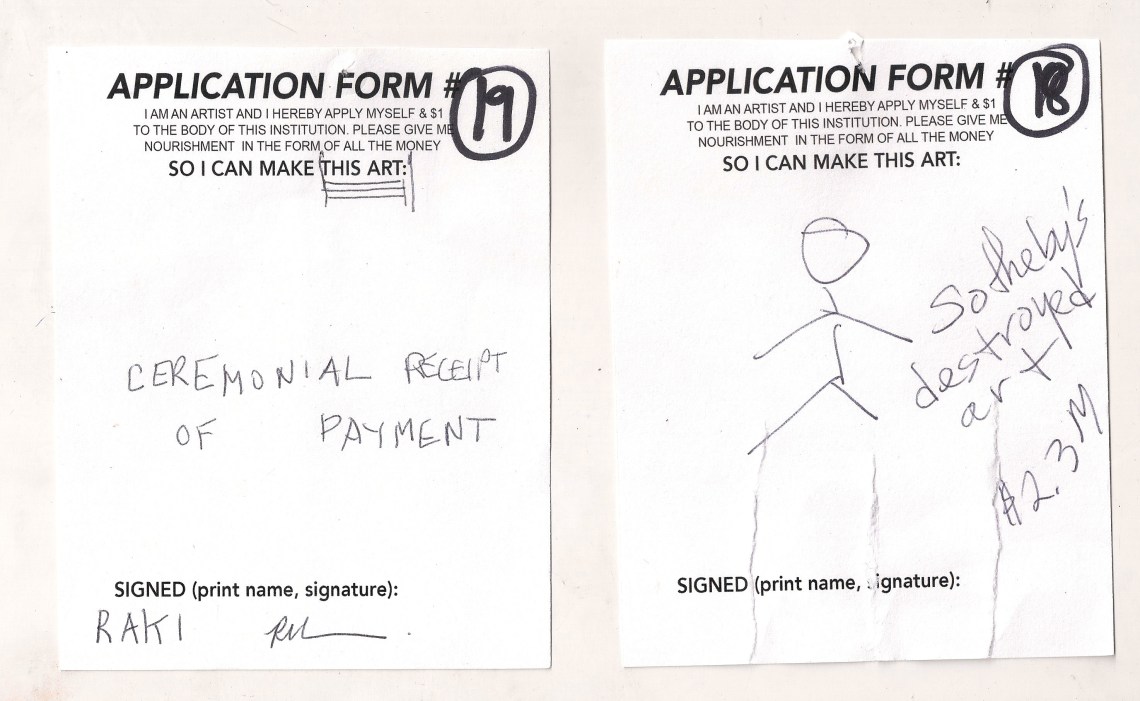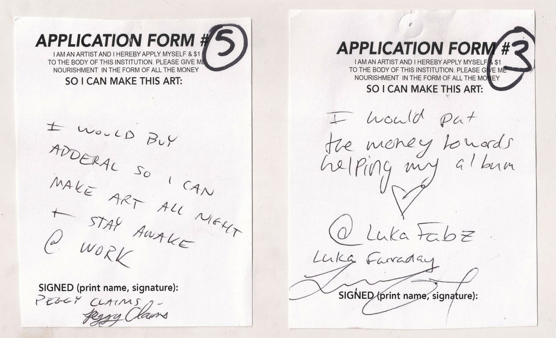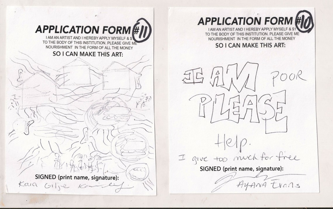 4-day durational/interactive process along 14th Street, embodying institution of a grant. 26 Applications and fees collected, applications installed at the Westbeth Gallery (55 Bethune) and voted on via ballot by visitors through October 27. Elected grantee will receive the pooled application fees + any donations. Grant recipient TBA at the Art in Odd Places exhibition closing party, October 27, 2018.