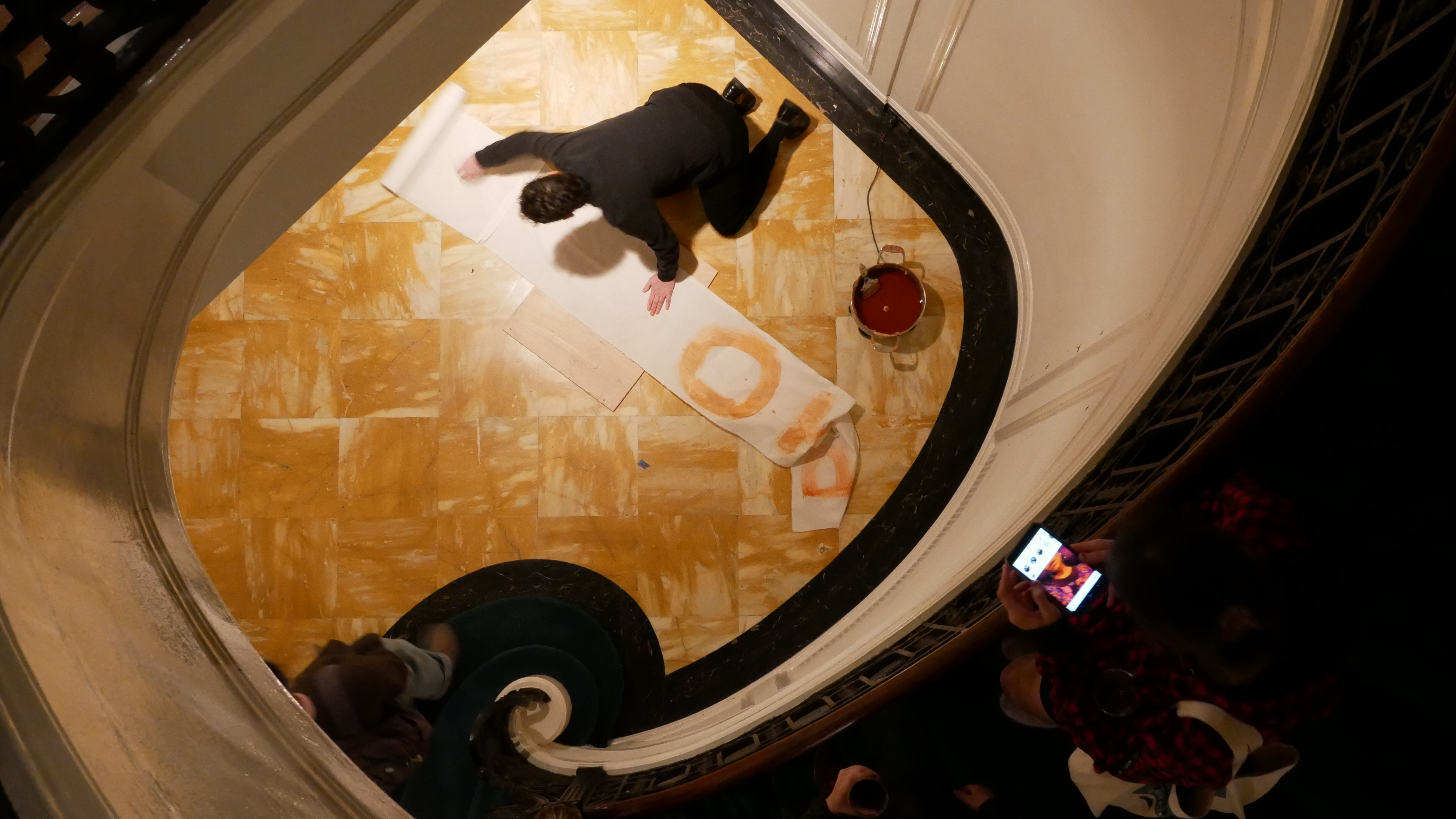 (framing text: The artists Esther Neff (based in NYC) and Anja Ibsch (based in Berlin) will make a collaborative performance at the historical site of German-American exchange, 1014 Fifth Avenue. This townhouse opposite the Metropolitan Museum once belonged to the last US Ambassador to Imperial Germany and will be the future home of the German Academy New York. Have earlier encounters inscribed themselves in this place? Is there a “spirit” in the rooms? The two artists pursue relationships to their respective, located positions in historic, cultural, and personal timespace, elucidating not only intrapersonal exchange or contact but also contexts through which their bodies and socio-political embodiments appear and make appearance(s).”