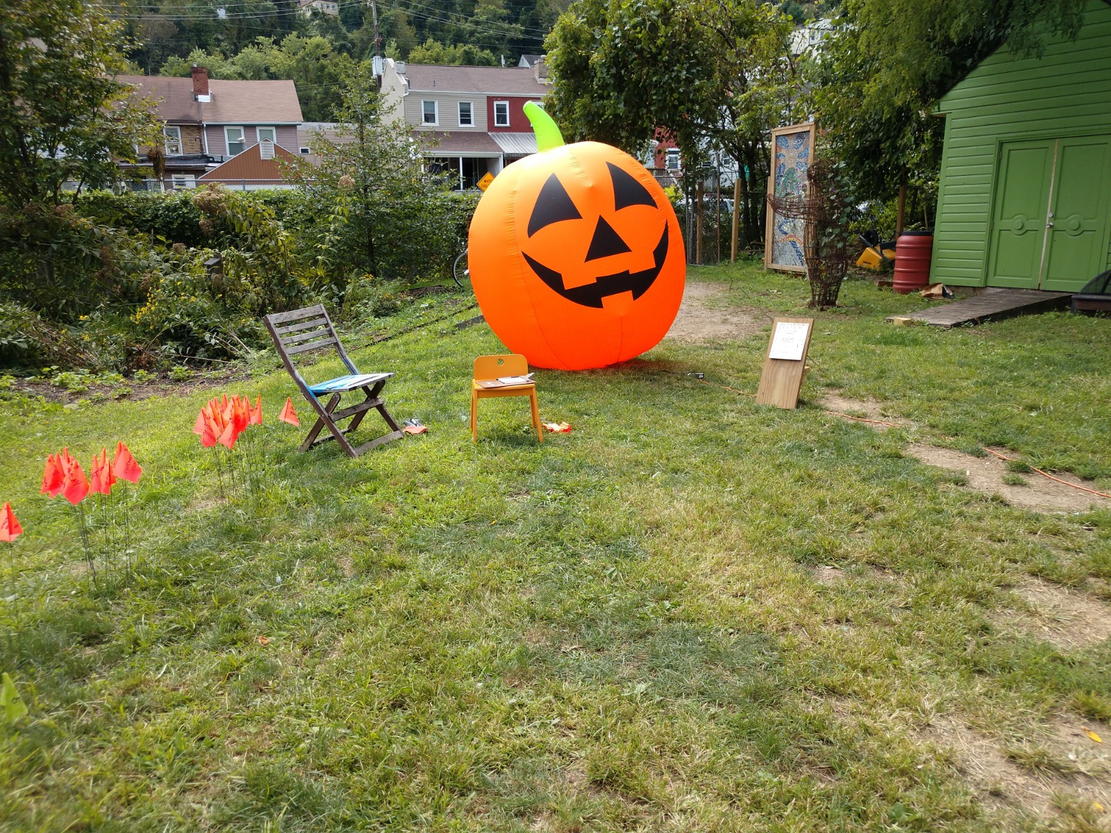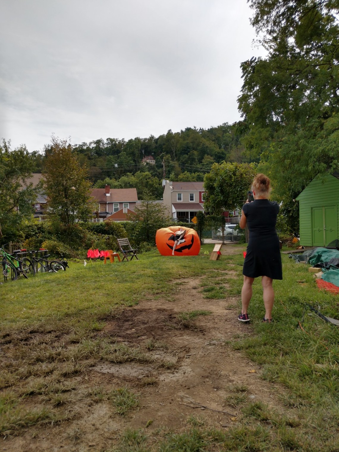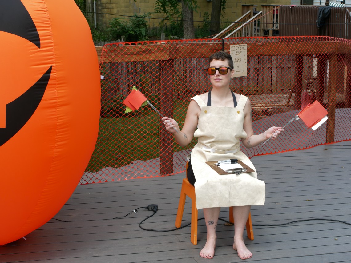 For the two days of the festival I set up an inflatable pumpkin at the Millvale public library and collaboratively diagram inquiries into good and right life/action one-on-one with participants. Throughout, I also documented/indexed statements on orange flags. At the end of the second day I performed a visual (re)presentation of intuitions shared.
