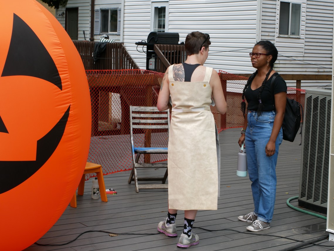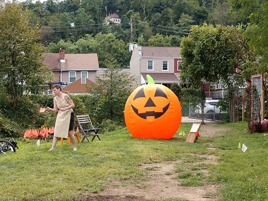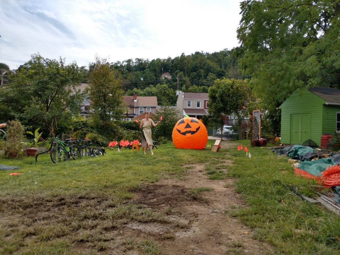 For the two days of the festival I set up an inflatable pumpkin at the Millvale public library and collaboratively diagram inquiries into good and right life/action one-on-one with participants. Throughout, I also documented/indexed statements on orange flags. At the end of the second day I performed a visual (re)presentation of intuitions shared.