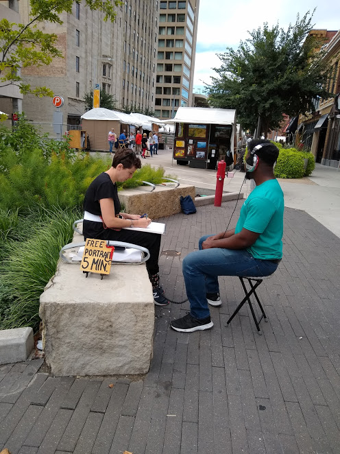 Lincoln, Nebraska: portrait-drawing as part of ARC research into affective transfer and affectionate transaction. In the context of a two-day local…