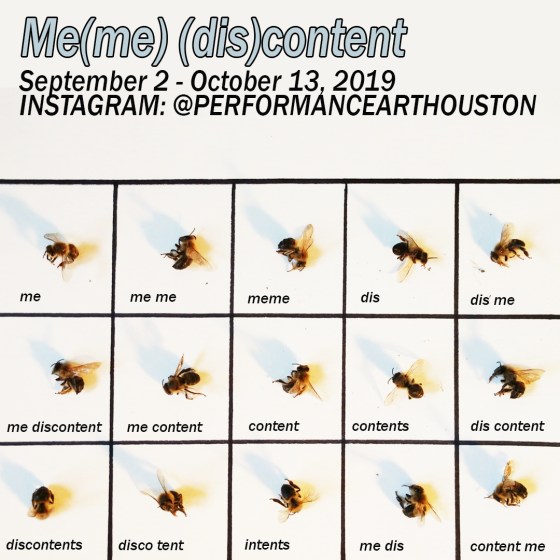 Website ME(ME) (DIS)CONTENT AN INSTAGRAM-BASED PERFORMANCE ART EVENT SEPTEMBER 2 – OCTOBER 13, 2019 FOLLOW @PERFORMANCEARTHOUSTON ON INSTAGRAM TO EXPERIENCE…